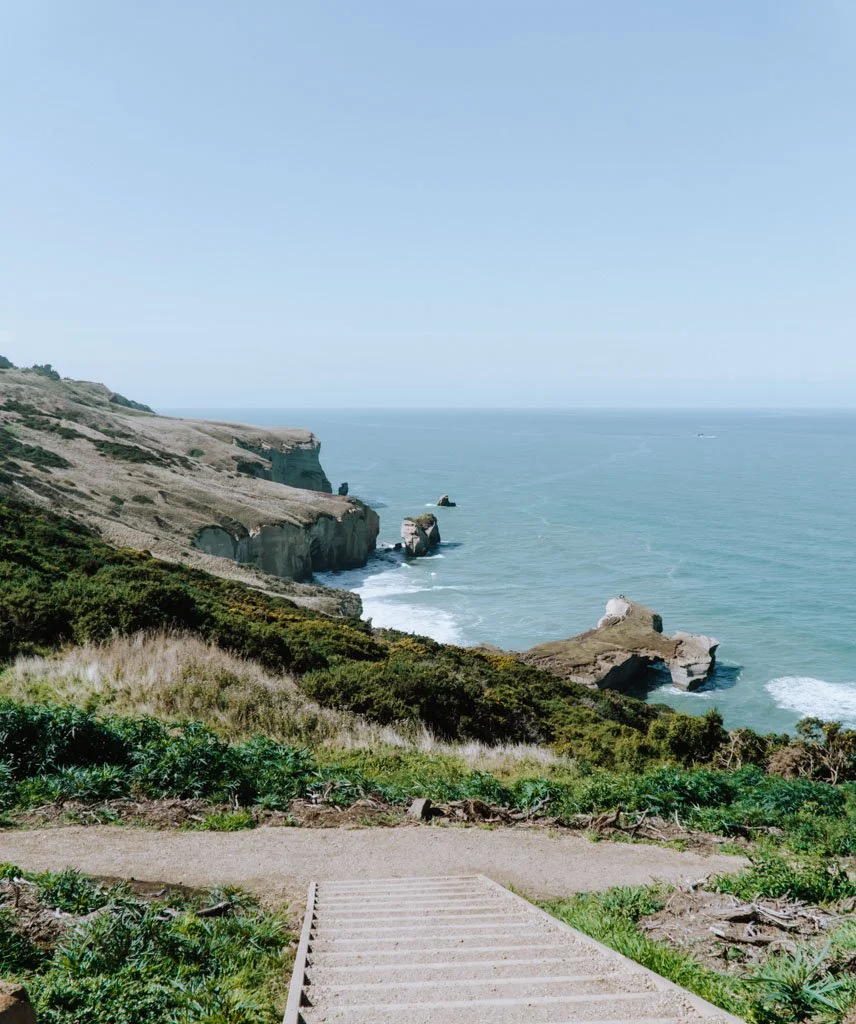 Thereβs also a short walk around a small headland, where you can admire the waves crashing into the Curio cliffs below.