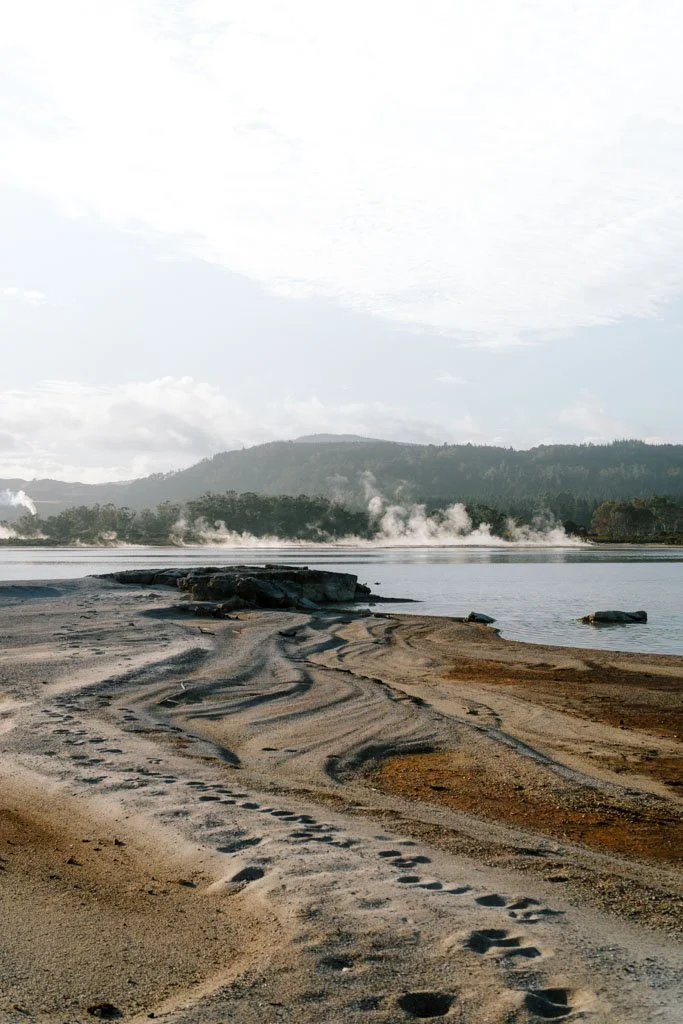Steam rising from the edge of Rotorua lake