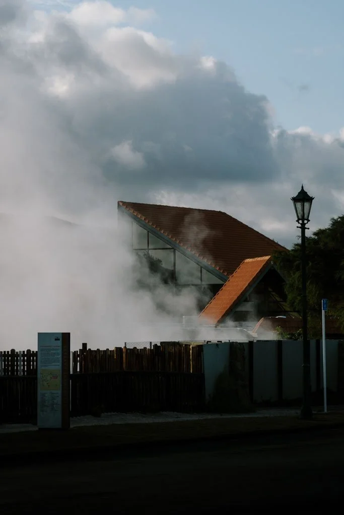 Steam rising from the Polynesian Spa in the centre of town