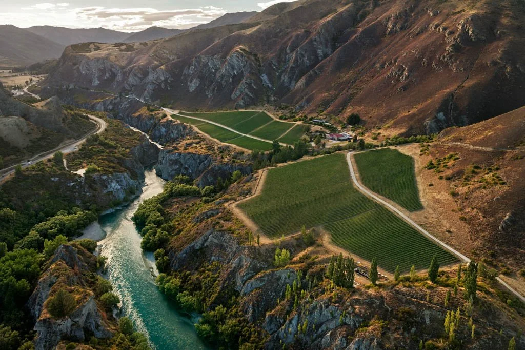 Between Queenstown and its smaller Central Otago neighbour, Cromwell, lies the Gibbston wine region. Along the bottom of the valley, the bright blue Kawarau River; along the sides, rocky, arid slopes which seem at first glance as if they would be too barren to grow grapes.