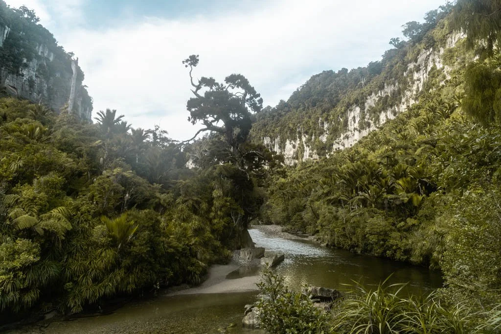 The final section of the track explores the Porari River Gorge, a beautiful limestone gorge with a clear river running through dense groves of nikau.
